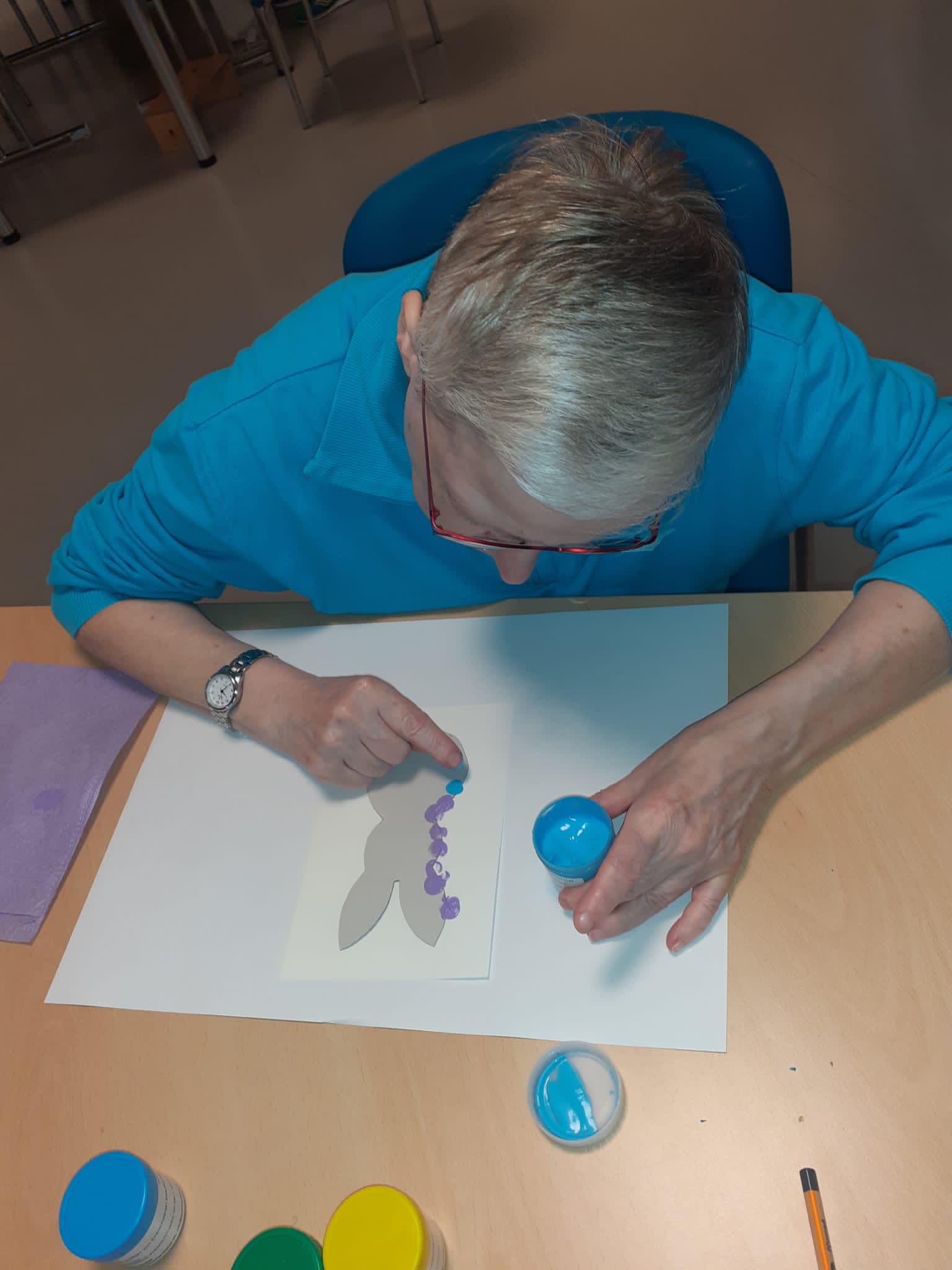 Die letzten Tage waren wir schwer beschäftigt Osterkarten für Angehörige, Betreuer etc zu gestalten.