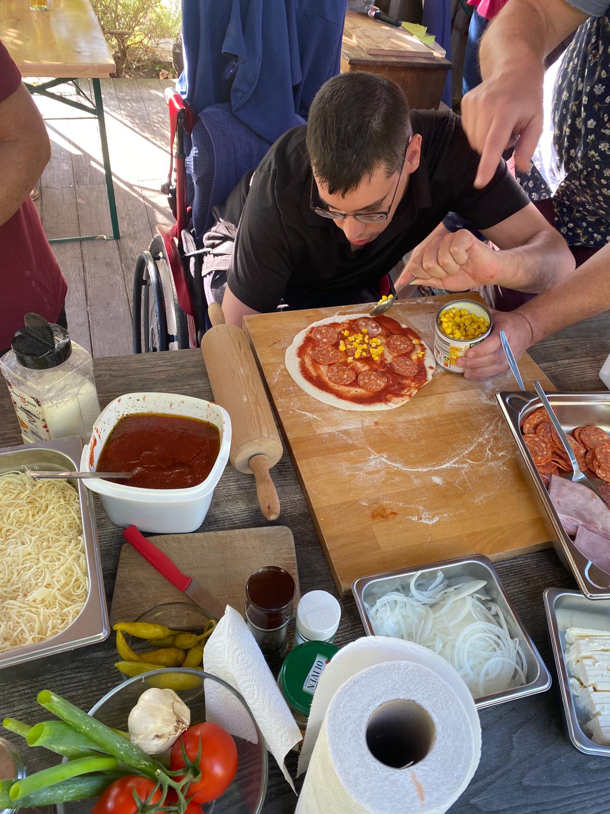 Gemeinsam mit der Vermieterin unserer Urlaubsunterkunft haben wir lecker Pizza gebacken.