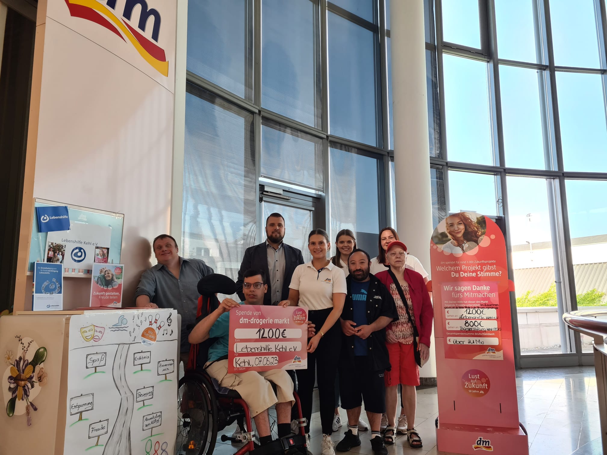 Insgesamt 2000 Euro erhalten die Lebenshilfe Kehl und die Bürgerstiftung Kehl aus der Aktion zum 50. Geburtstag des dm-Drogeriemaktes. Vom 19. bis 31. Mai konnten Kunden in zwei Kehler dm-Märkten für eines der zwei Zukunftsprojekte der beiden Einrichtungen ihre Stimme abgeben.